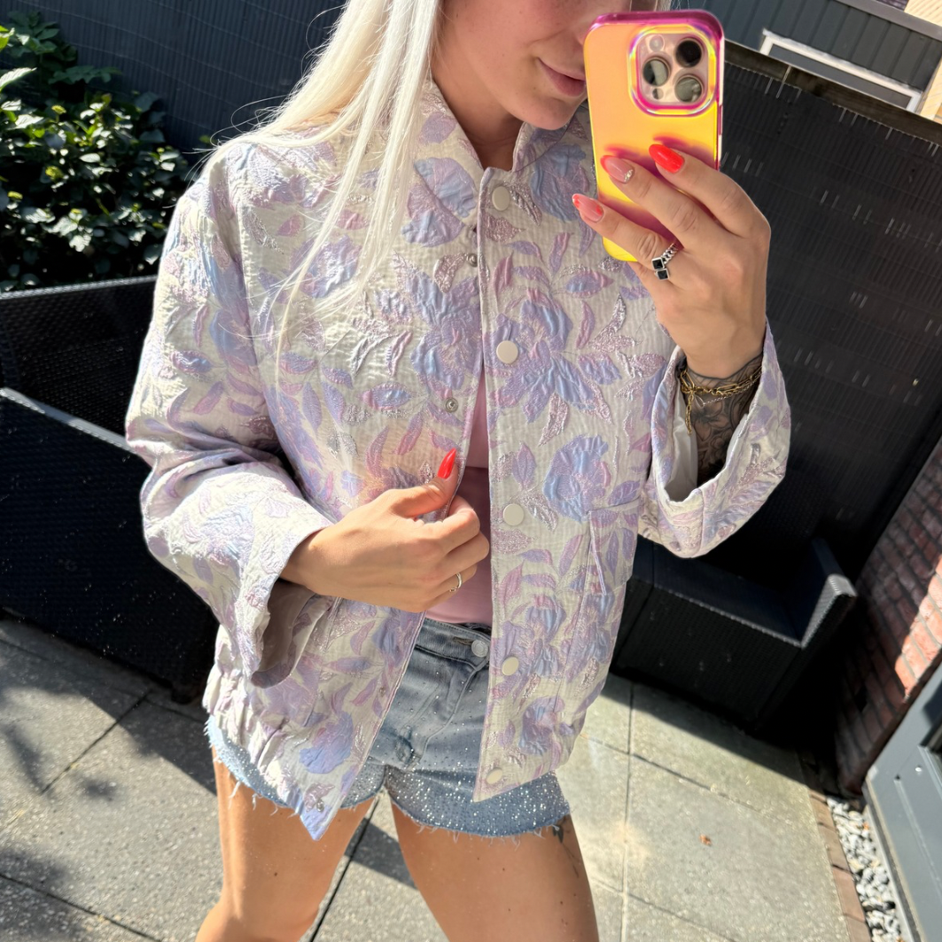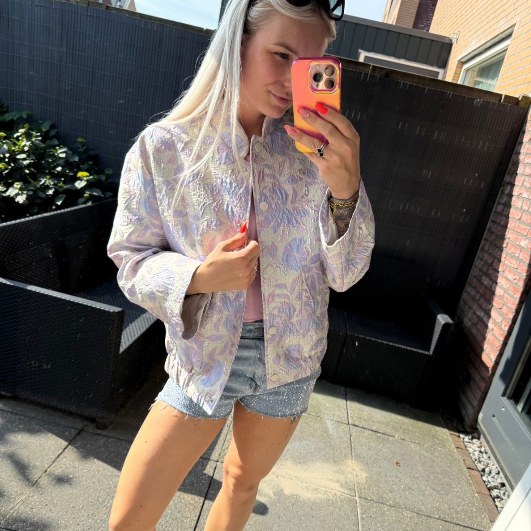 WAUW! Hoe leuk is deze jacket met jacquard print?! Verkrijgbaar in maat S/M & M/L.