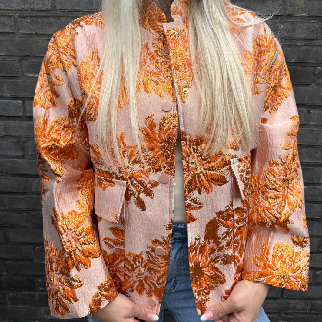 WAUW! Hoe leuk is deze jacket met jacquard print?! Verkrijgbaar in maat S/M & M/L.