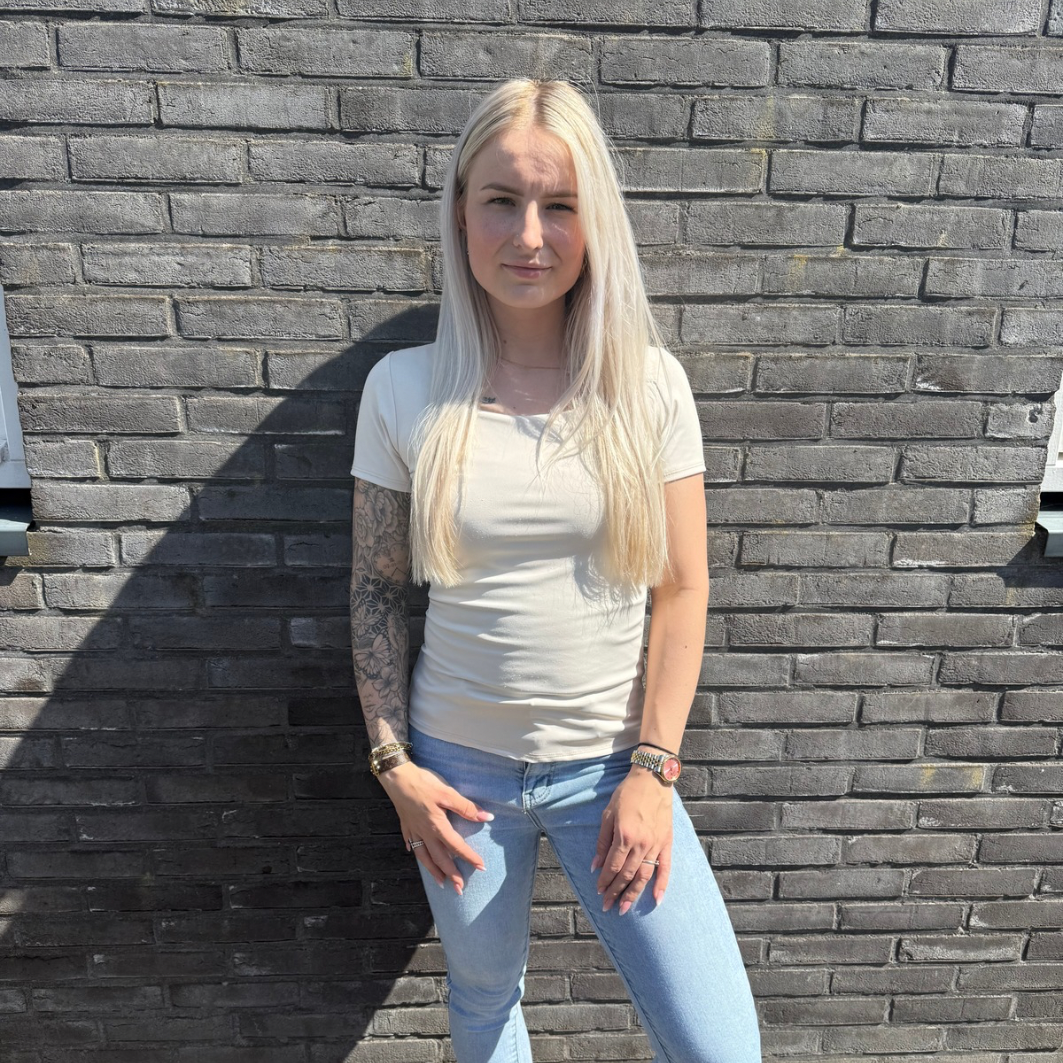 Super fijn basic T-shirt van travelstof. Maat one size. Te dragen met XS t/m M.